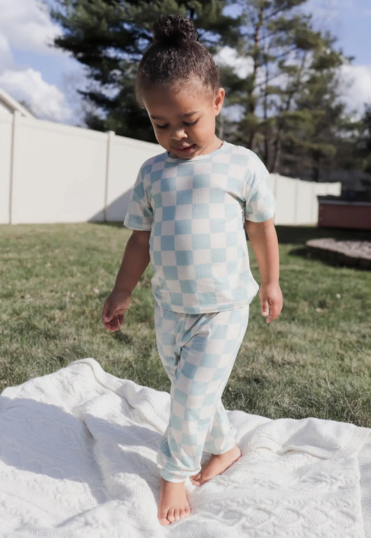 Blue Checkered Bamboo Set
