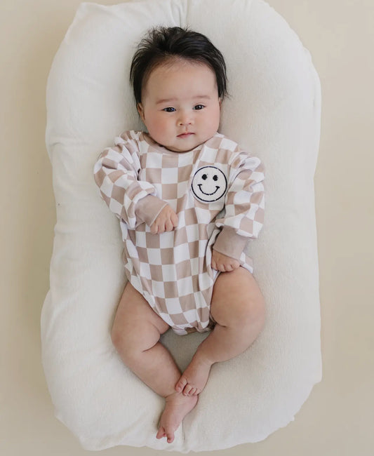Checkered Smiley Latte Bubble Romper