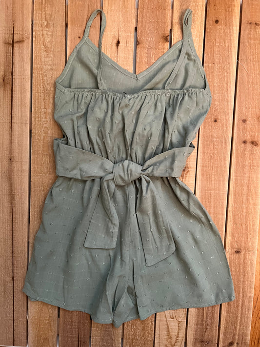 Sage Textured Romper with Tie