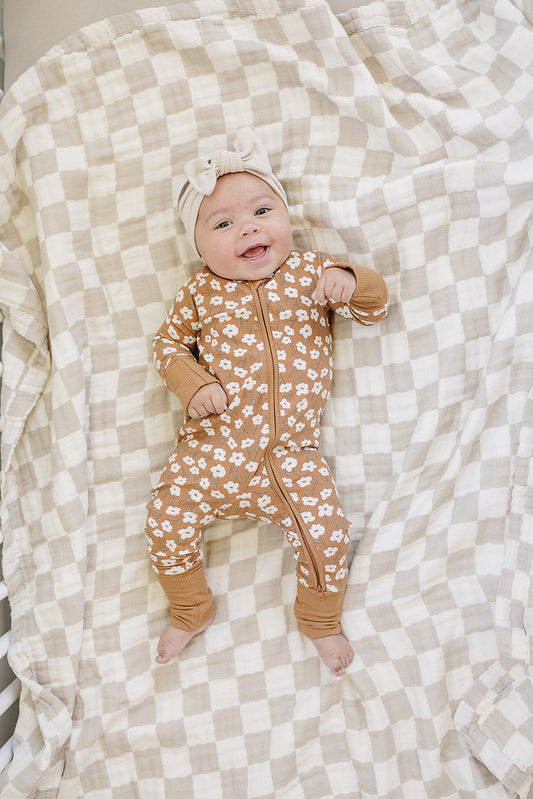 Navy Floral Ruffle Sleeve Bamboo Bodysuit