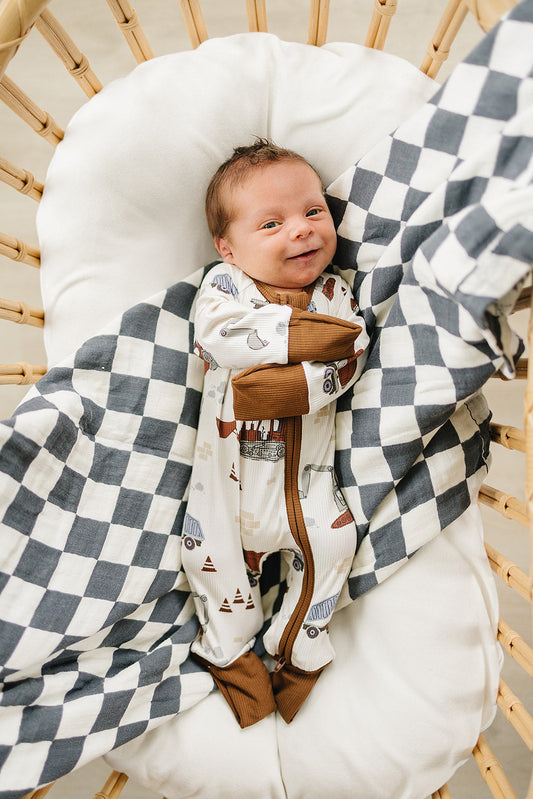 Rust Checkered Bamboo Stretch Swaddle