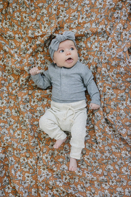 Heather Grey Bamboo Snap Long Sleeve Ribbed Bodysuit