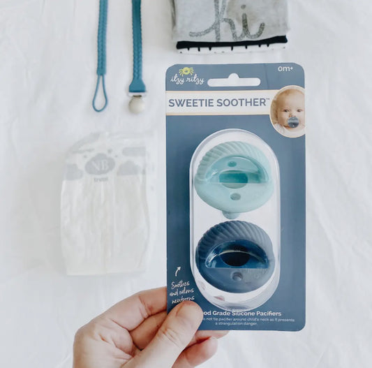 Sweetie Soother Pacifier Sets- Robin's Egg Blue & Navy Cables (0-6 months)