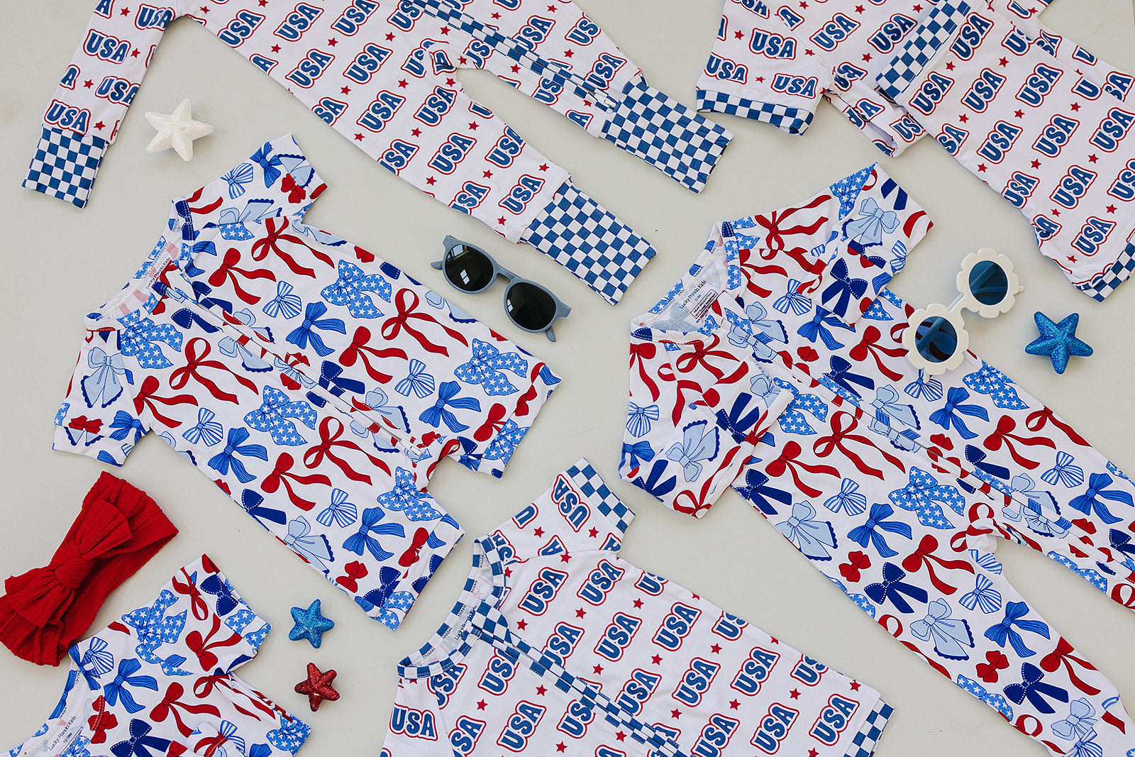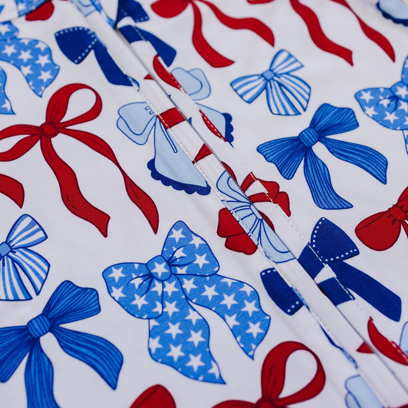 This adorable romper features a charming print of red, white, and blue bows, making it the perfect outfit for all your patriotic celebrations. Crafted from buttery-soft bamboo, it's lightweight, breathable, and stretchy—keeping your little one comfy whether they're playing, exploring, or napping on a warm day.
