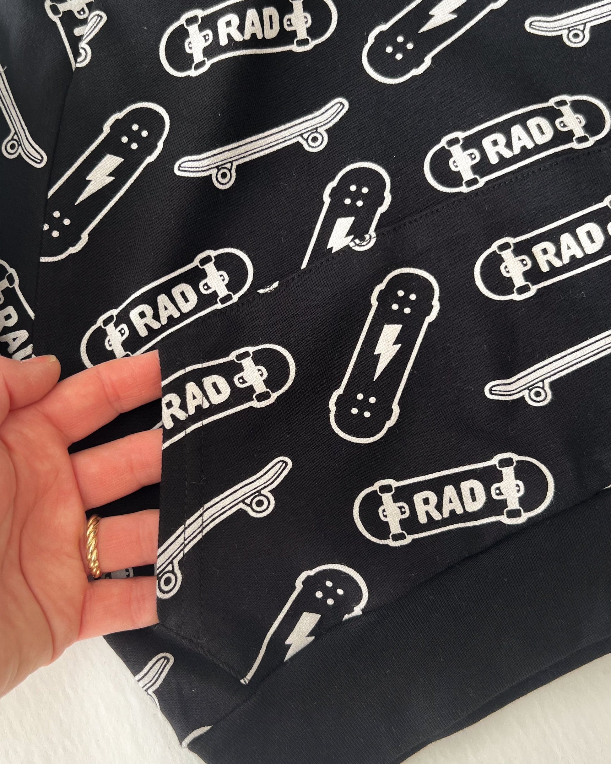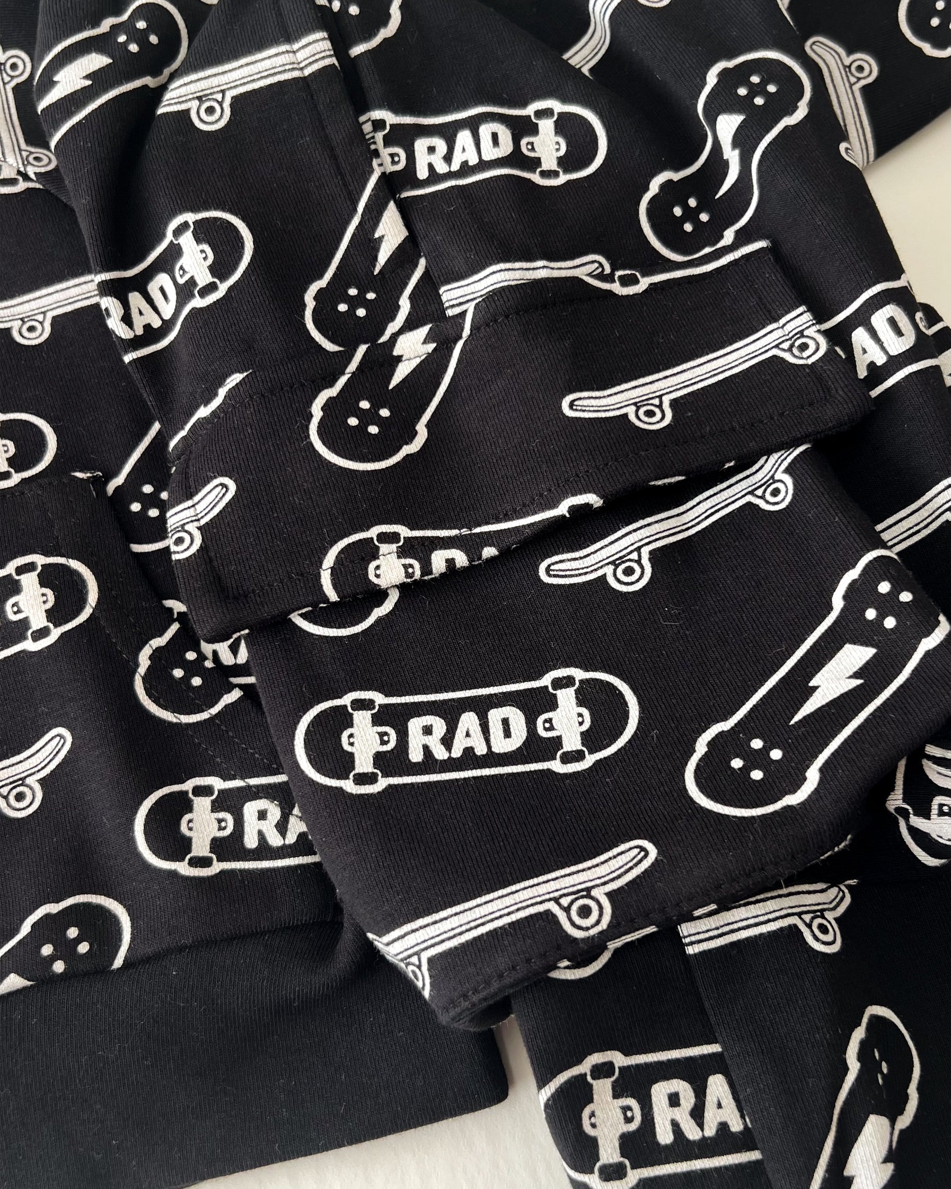 Made from ultra-soft cotton, it’s perfect for the upcoming Spring months, offering the perfect mix of style, comfort, and practicality. The relaxed fit and fun RAD skateboard print give it just the right amount of cool for any day out or active play. Plus, with pockets to stash all their favorite finds, they’ll be ready for anything.