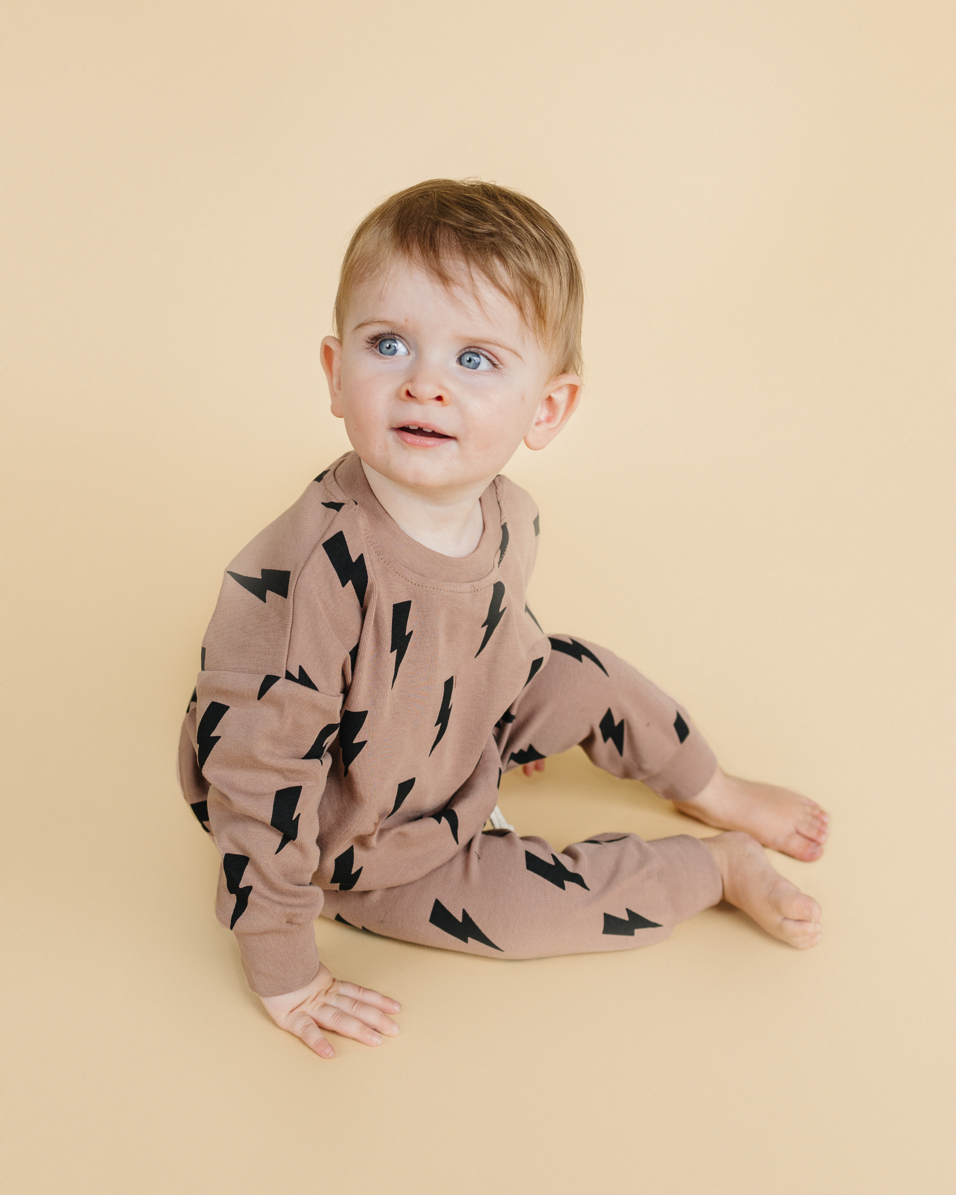 Your little one will look adorable and feel comfy in this playful set with bold bolts. This two-piece set is made of oh-so-soft cotton, perfect for daily lounging during any season! Stylish enough for a day out, cozy and comfortable for play. Gender neutral and up to 9Y, this rad and modern design will be your little one's favorite must-have!