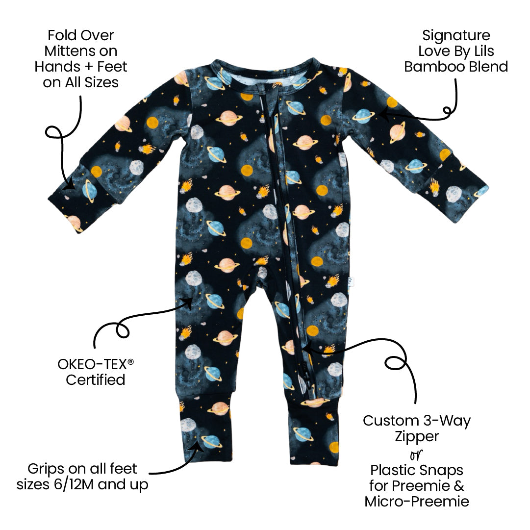 Laree + Co.'s luxuriously soft bamboo one-piece convertible footie with three-way zippers is a game changer. They make diaper changes a breeze and are also perfect for our little warriors with tubes and wires!