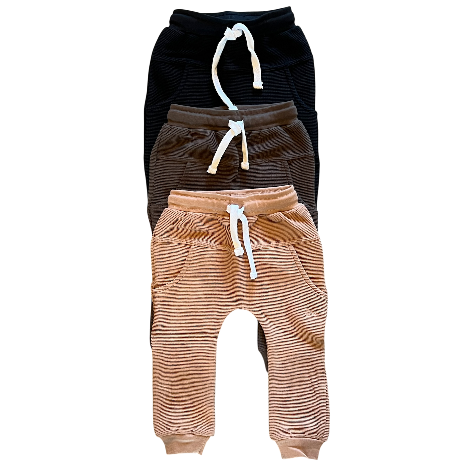 Get your little ones ready for adventure with our Waffle Knit Joggers! Made with a luxurious blend of bamboo and polyester, these joggers feature a cozy waffle knit design in earth tones. Perfect for playtime or lounging, these joggers are both comfortable and stylish.
